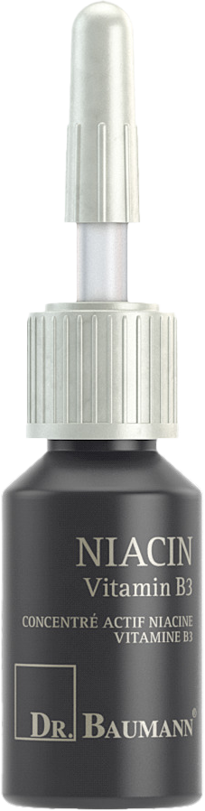 Vitamin B3: Stabilisiert die Hautbarriere, fördert die Bildung von Ceramiden, Fettsäuren, Chilesterin, Glycosylceramiden, reduziert den transepidermalen Wasserverlust, normalisiert Pigmentunregelmässigkeiten, wirkt gegen vorzeitige Hautalterung.